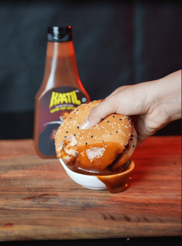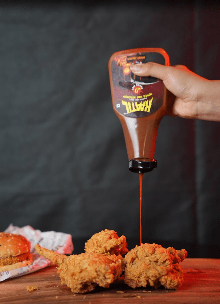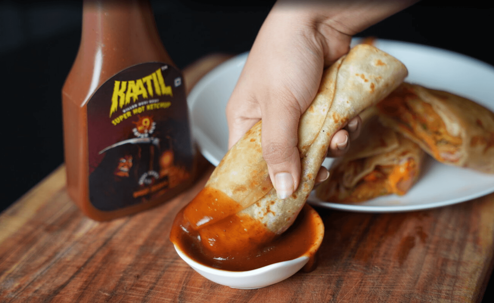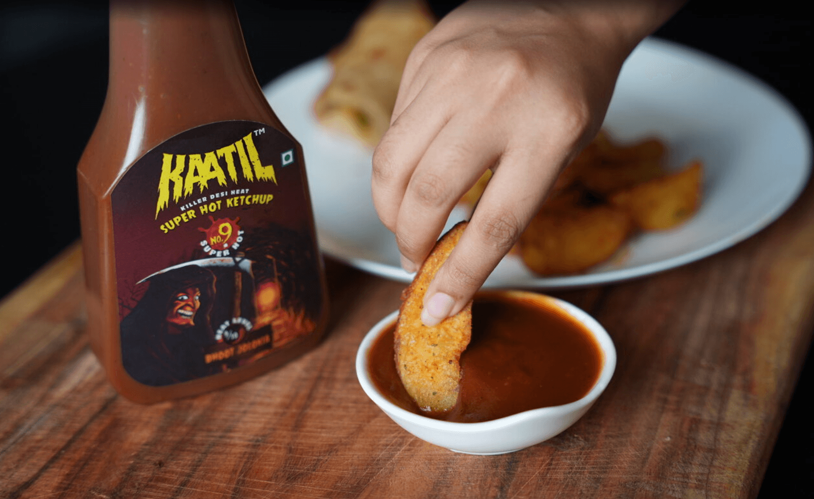 Participating in a creative photoshoot for Kaatil, an innovative desi ketchup brand.